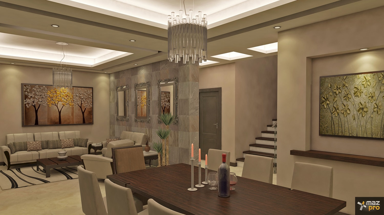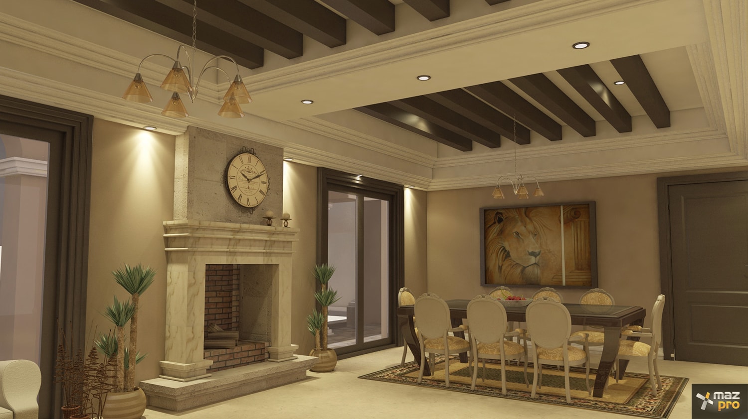 Proyecto de residencia en San Pedro Garza García, de estilo clásico con un área social abierta y comunicada con el exterior por medio de ventanales en sala, comedor y cocina.