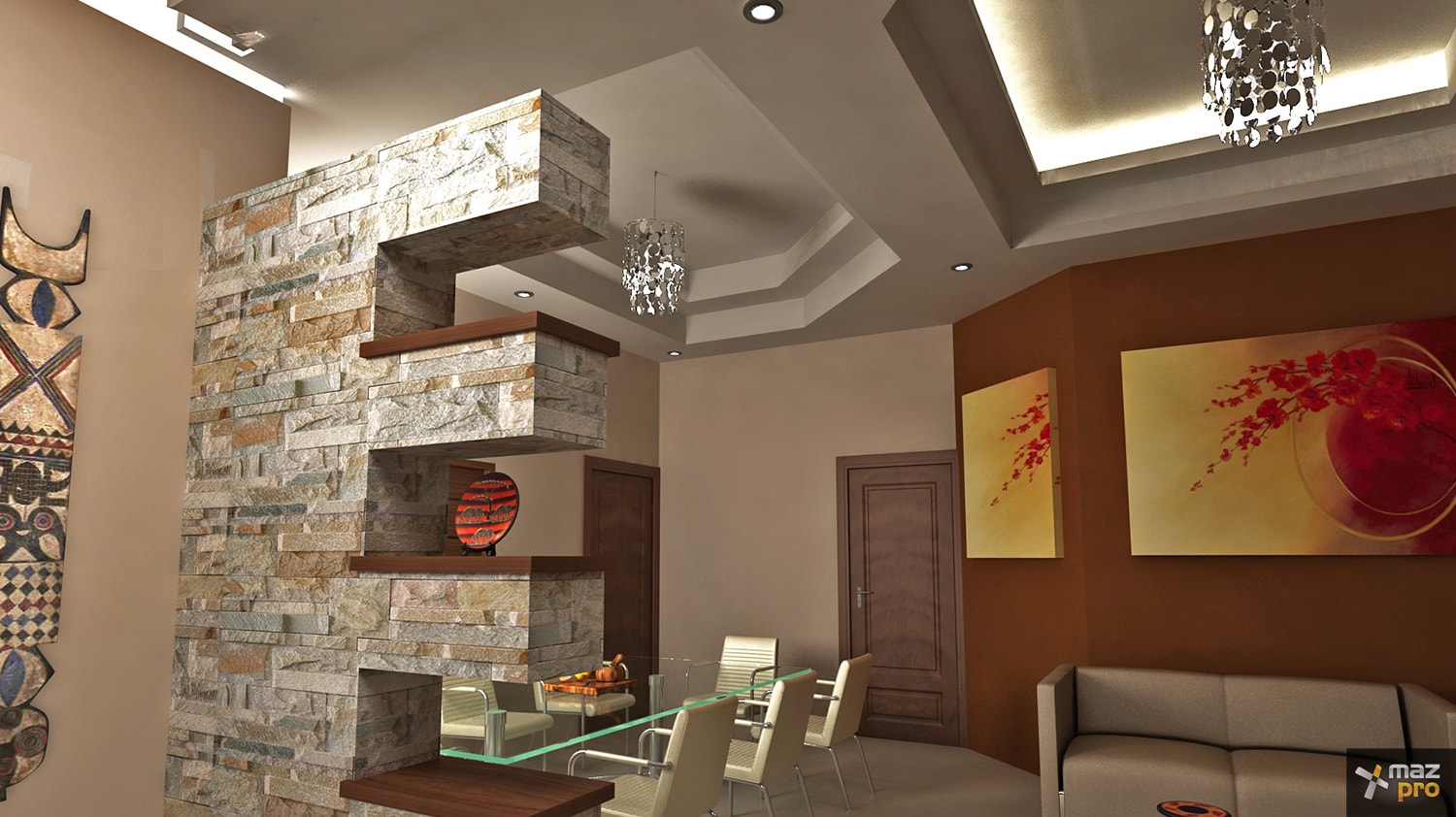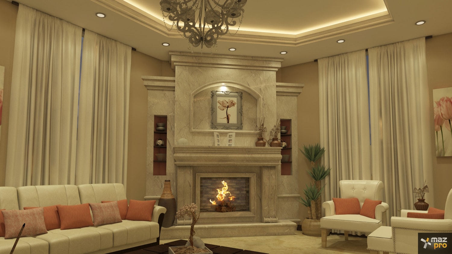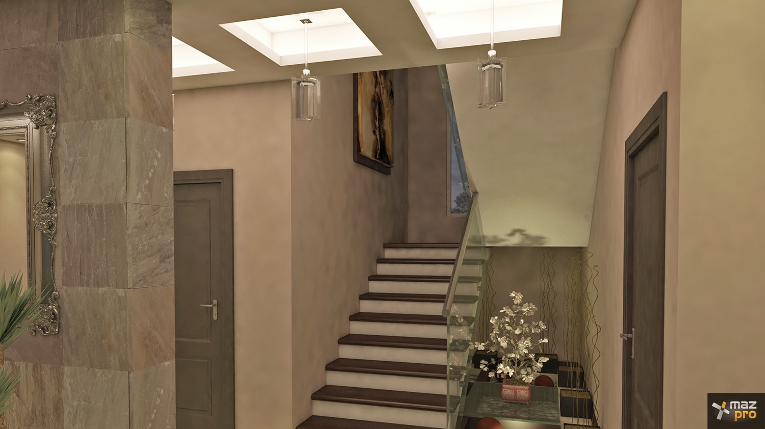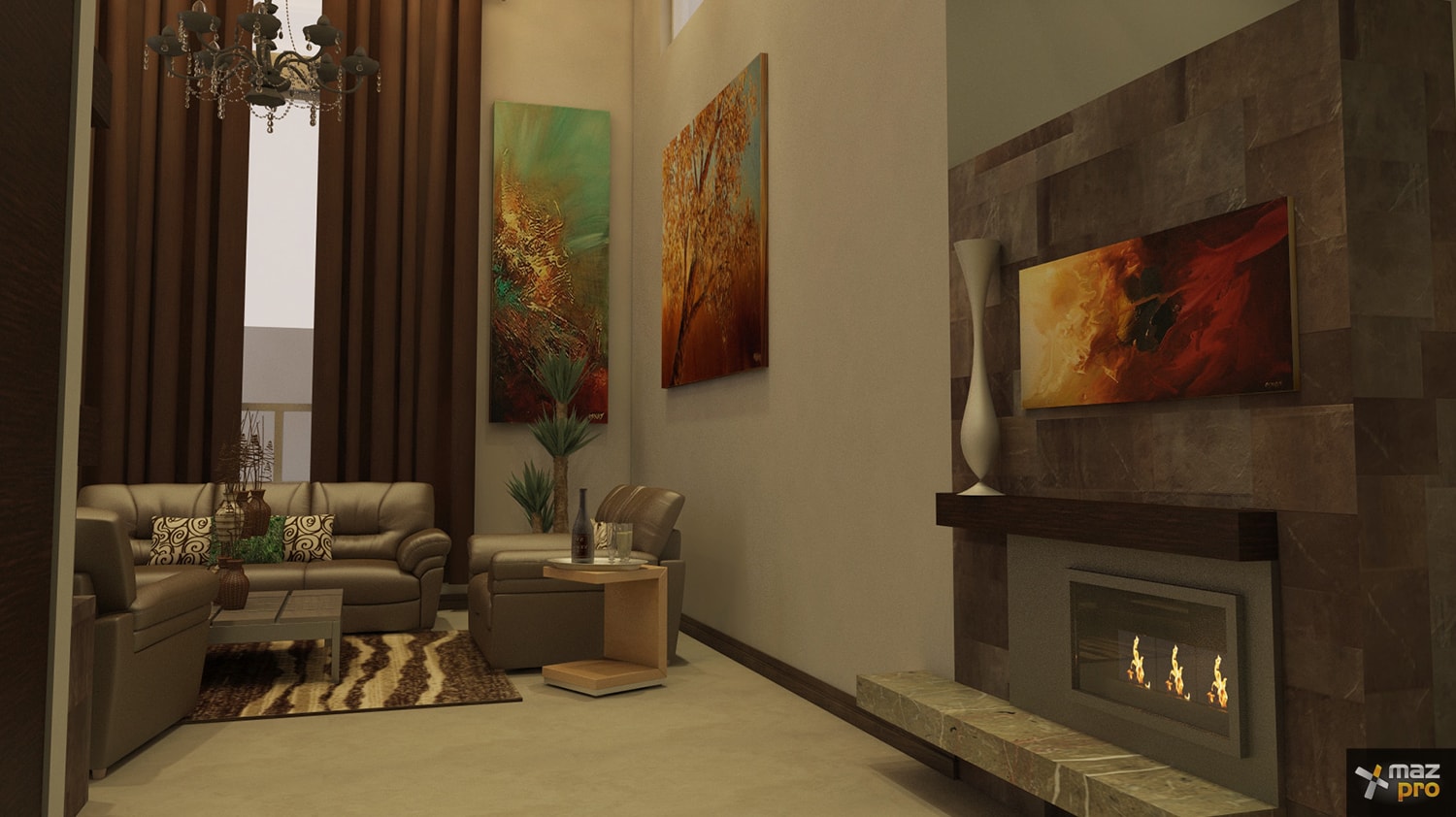 El diseño de esta vivienda ubicada en Santiago N.L. se rige por la estética que predomina en el fraccionamiento y el gusto personal del cliente, de líneas clásicas, se utilizan arcos y molduras, así como teja y piedra. Para los colores se proponen tonos cálidos inspirados en los colores típicos de la arquitectura del noreste.
