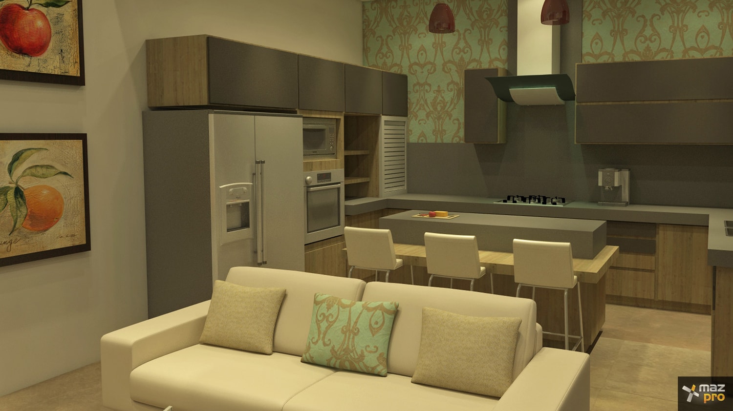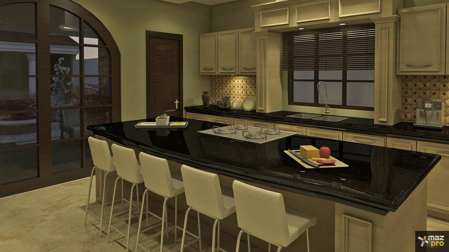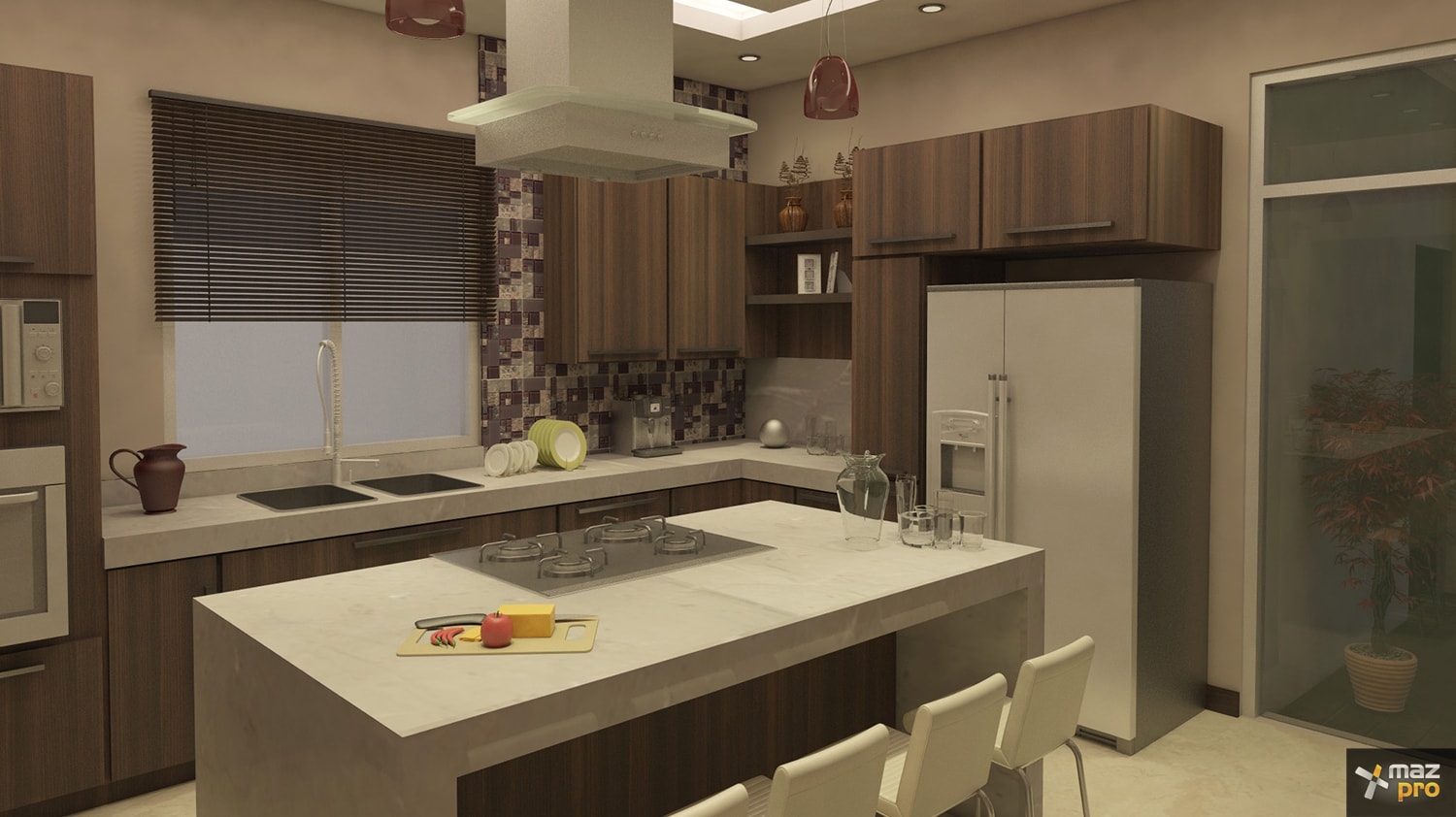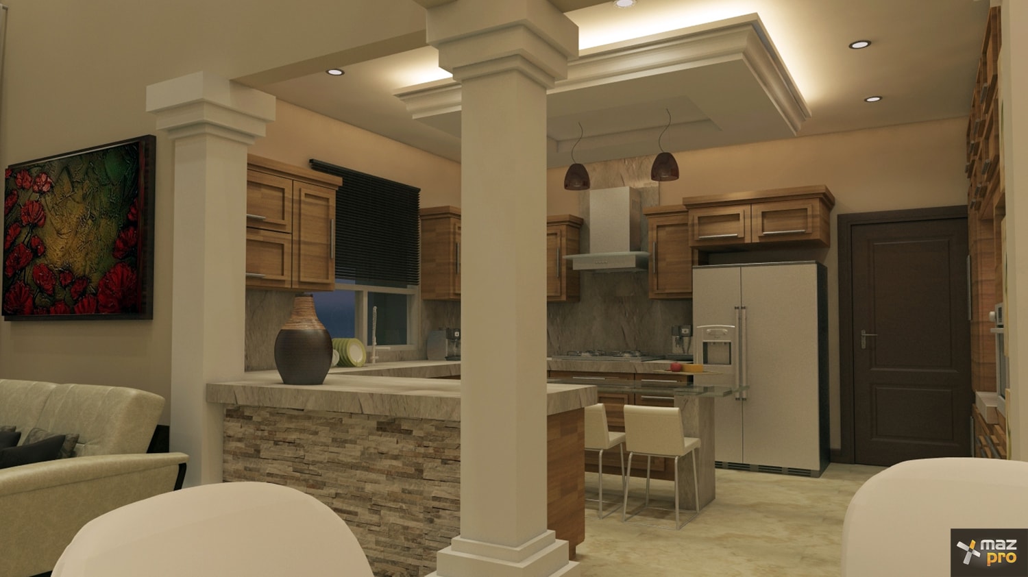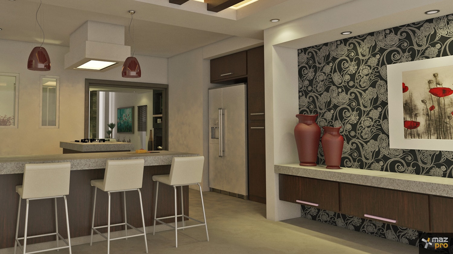 Para este proyecto se buscó integrar el gusto personal del cliente con espacios abiertos que conectaran el área social interior y exterior por medio de una terraza y asador que se acceden desde la cocina, sala, comedor y recámara principal. Las puertas dobles corredizas de la cocina se esconden en los muros de forma que ésta puede estar abierta o cerrada hacia el área social.