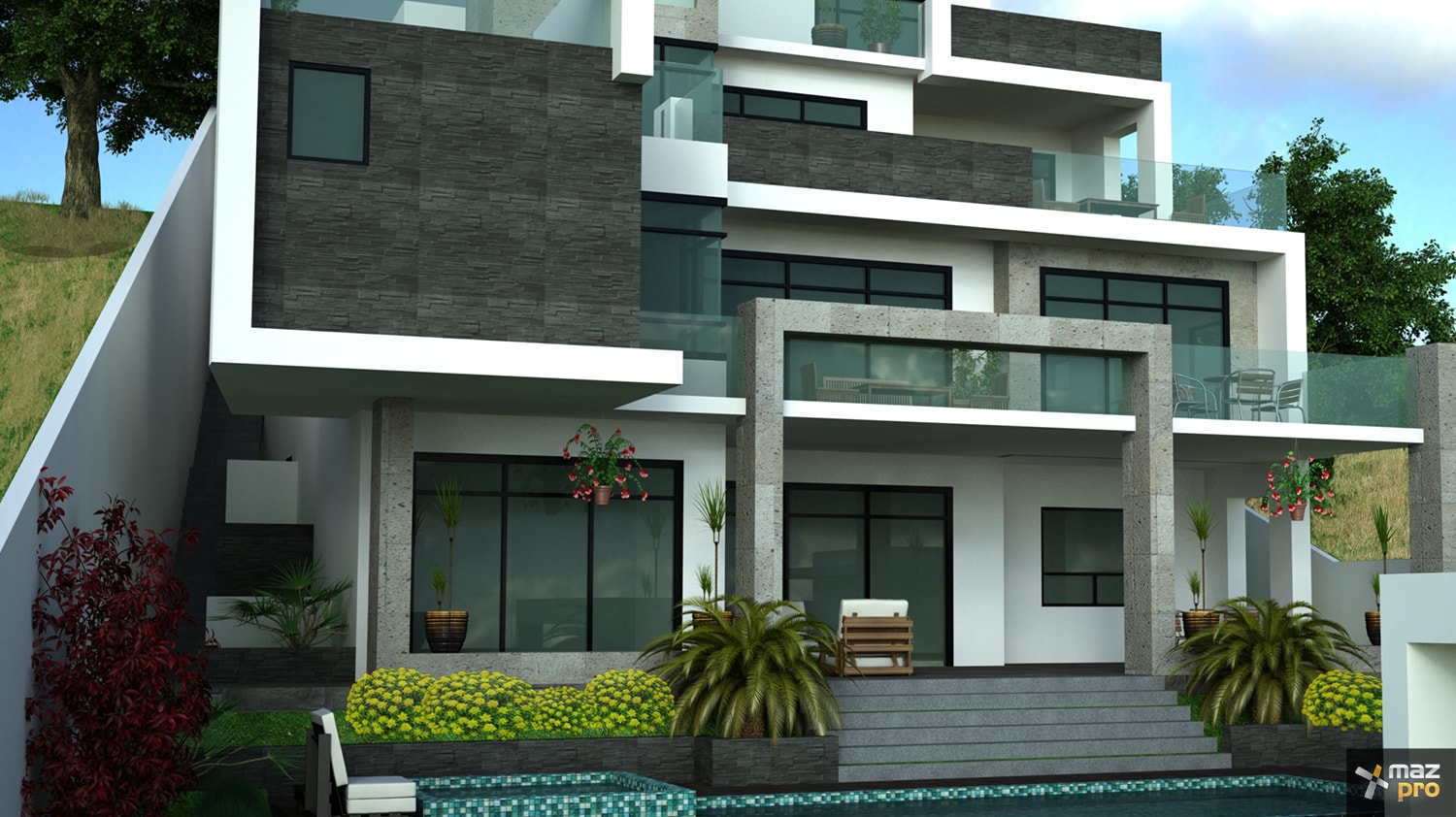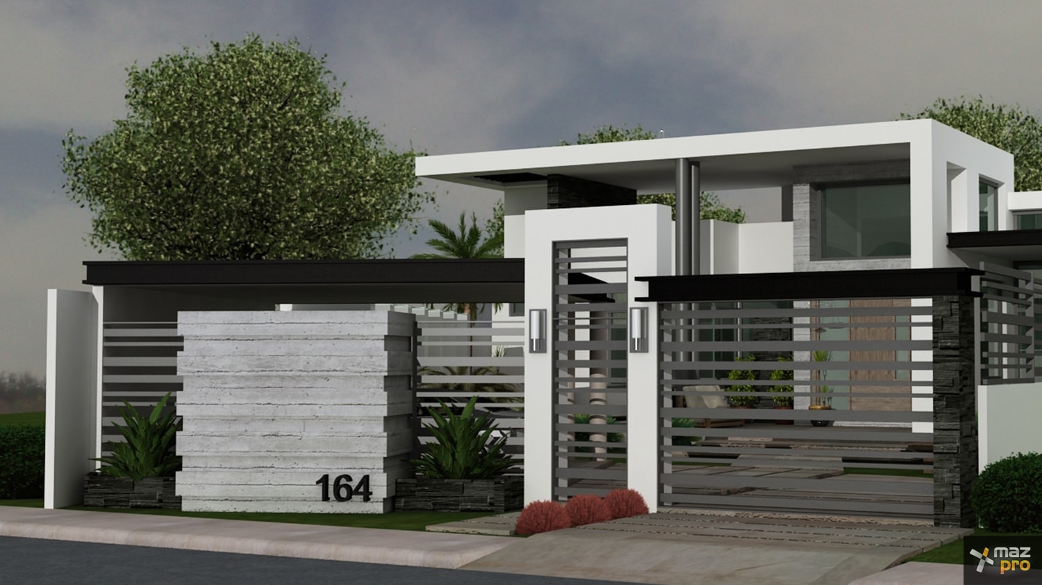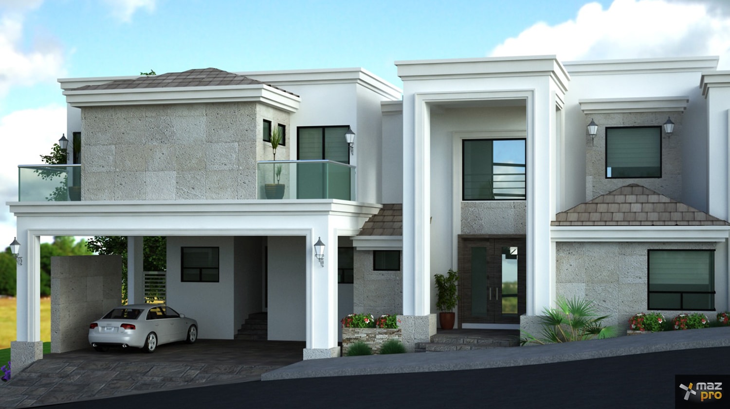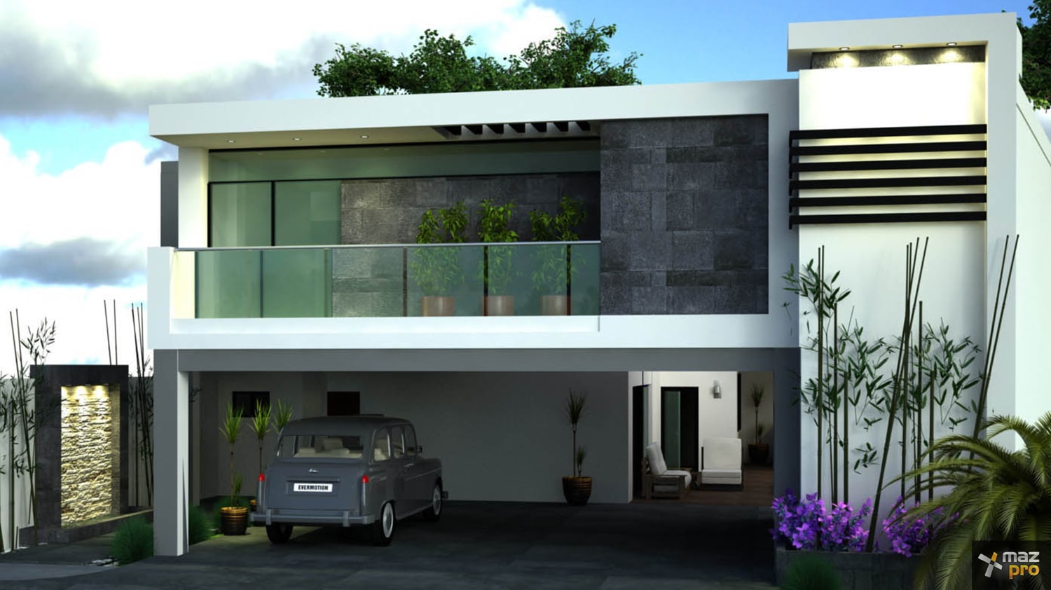 Propuesta de remodelación de fachada e interiores de obra en construcción, con un estilo contemporáneo se busca lograr juegos de luces y sombras por medio de vigas voladas en la terraza frontal, se proponen nuevas aperturas que dejen pasar la luz tanto en cochera como en pórtico, detallándolas con recinto y piedra en tonos que van desde el gris al negro para una estética contemporánea.