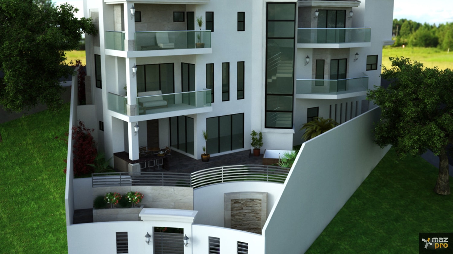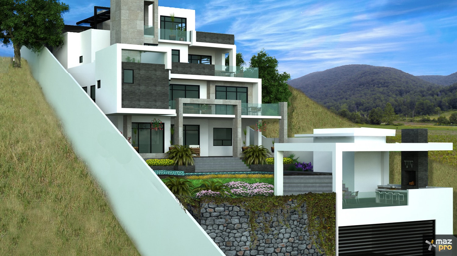 El proyecto ubicado en un terreo descendente muy cerca de la Sierra Madre, se basa en adaptarse a la topografía natural del terreno y desarrollar el programa aprovechando al máximo las vistas por medio de grandes ventanales y terrazas.